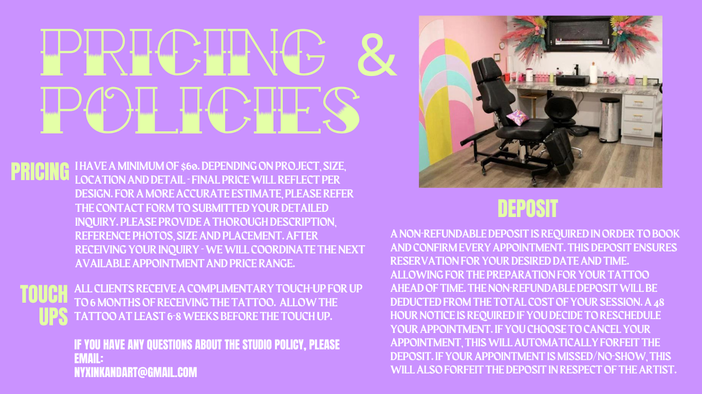 Click for more info on policies, payments, touchups, etc